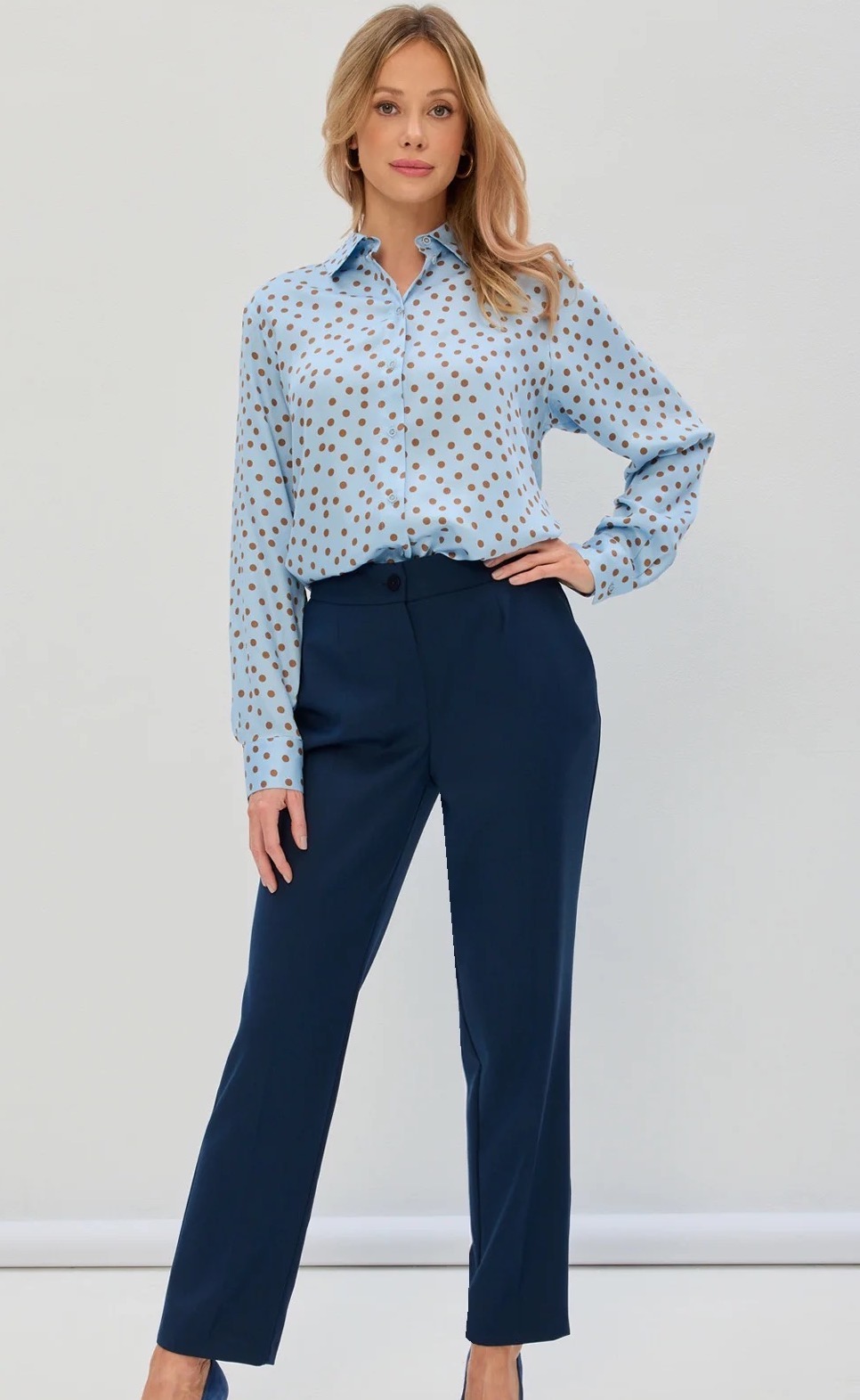 Dostępne są dwa kolory: ciemnoniebieski oraz toffi. Możliwość stworzenia zestawów z koszulami wiskozowymi w kropki o nr 15/10.