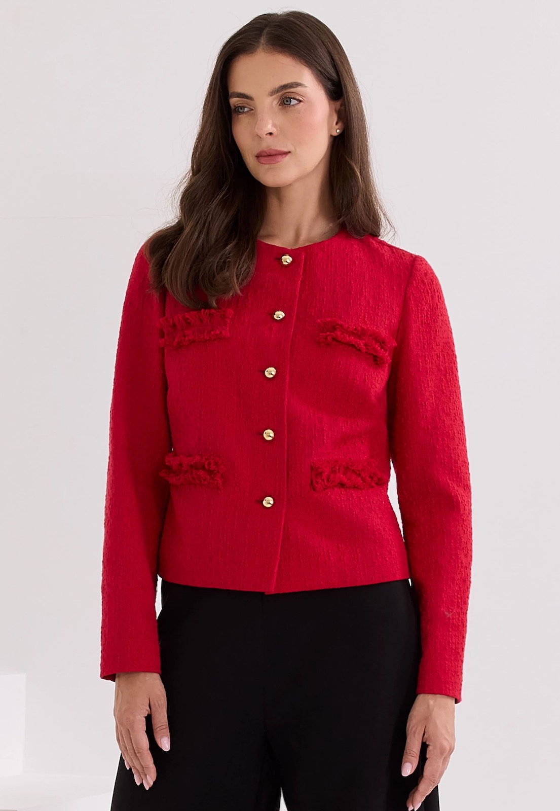 Czerwony żakiet typu channel z nowej kolekcji salko
