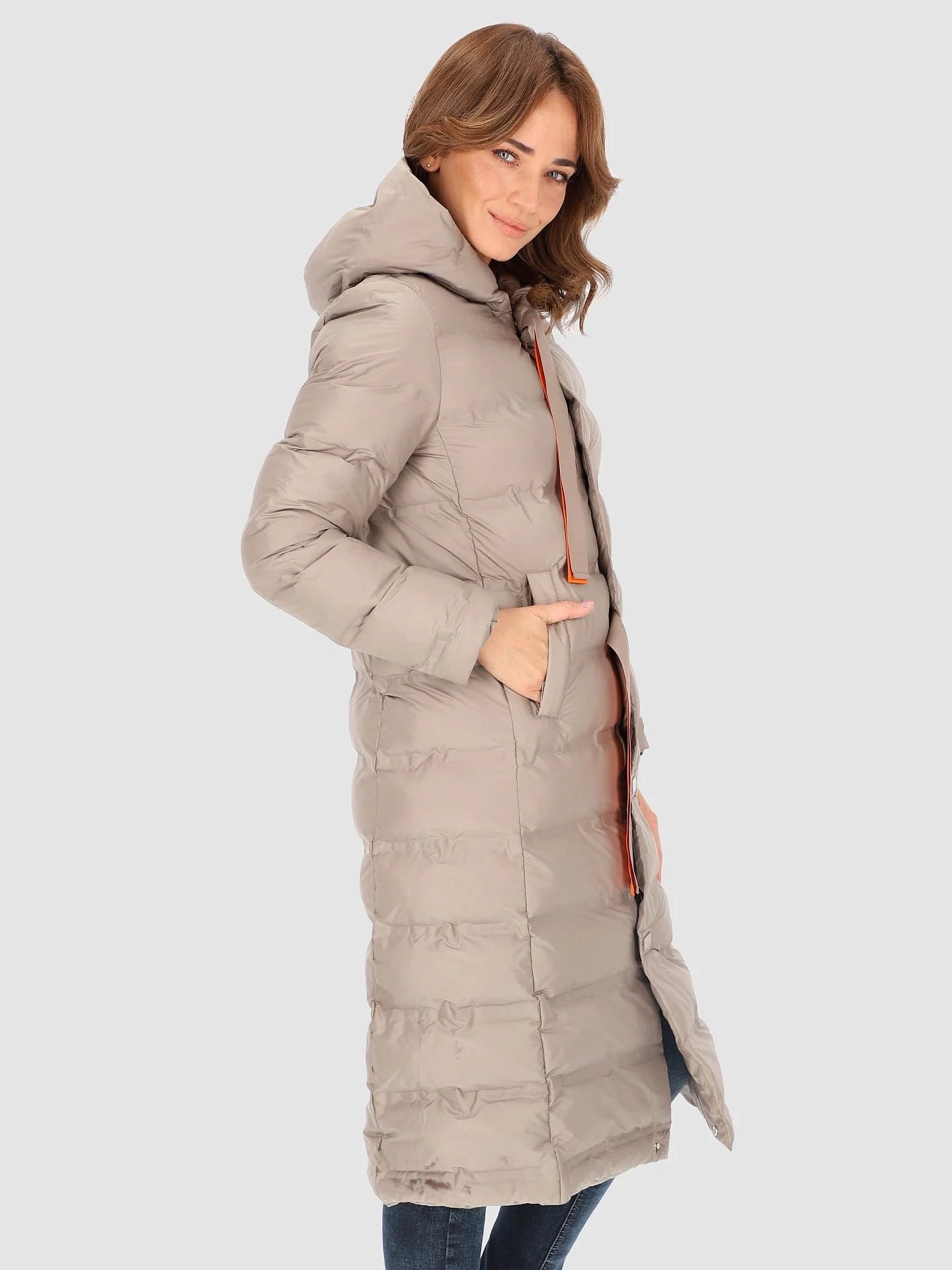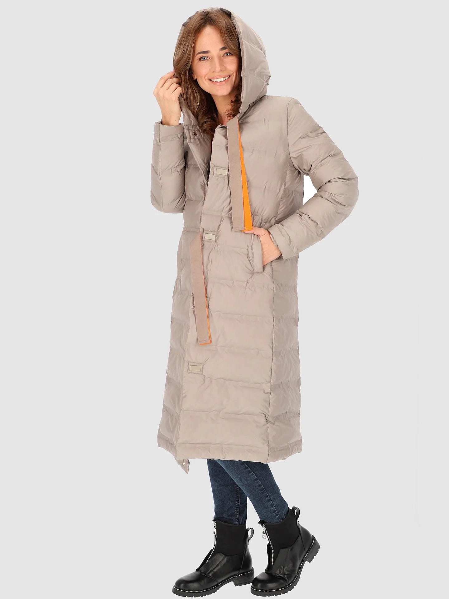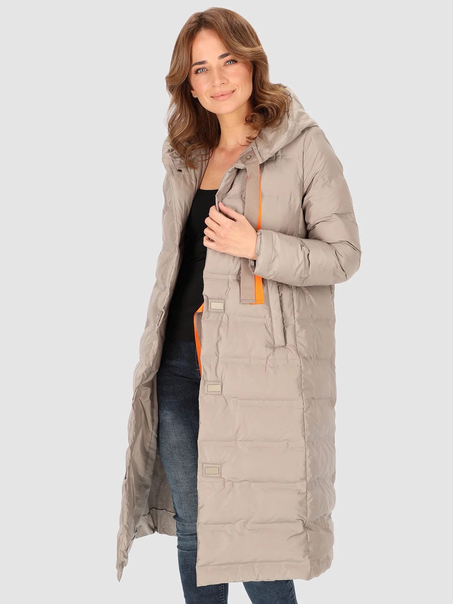 Długi płaszcz ocieplany z kapturem marki perso