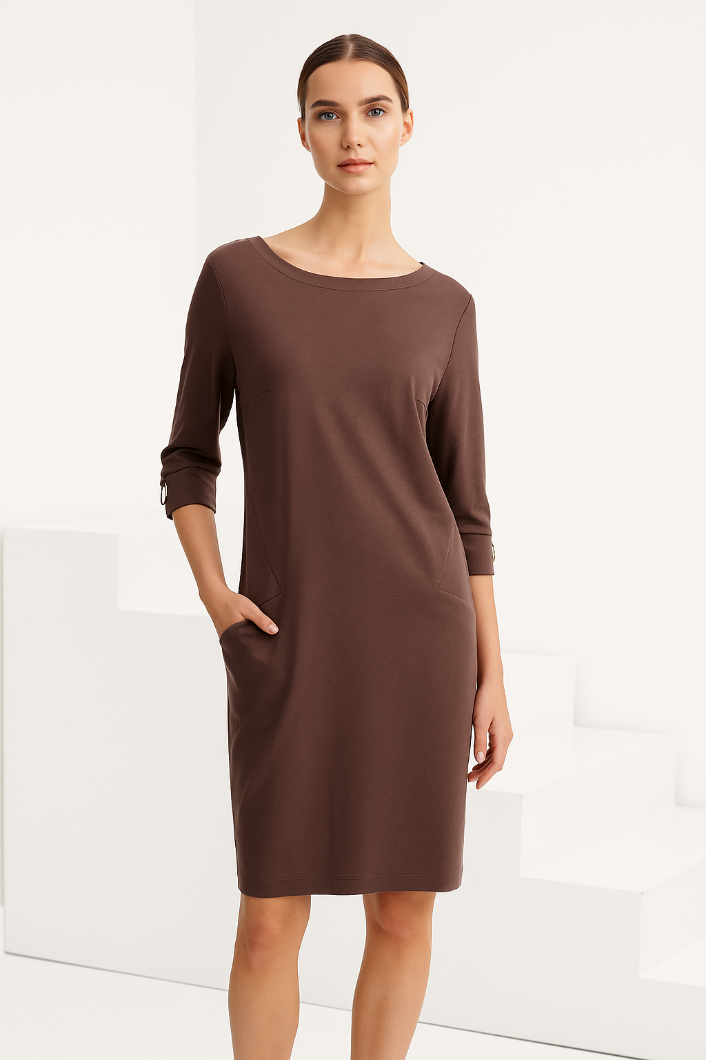 Sukienka z grubszej dzianiny bez podszewki, rękaw 3/4.