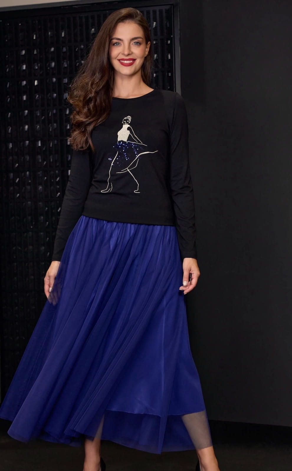 Elegancka spódnica salko w chabrowym kolorze