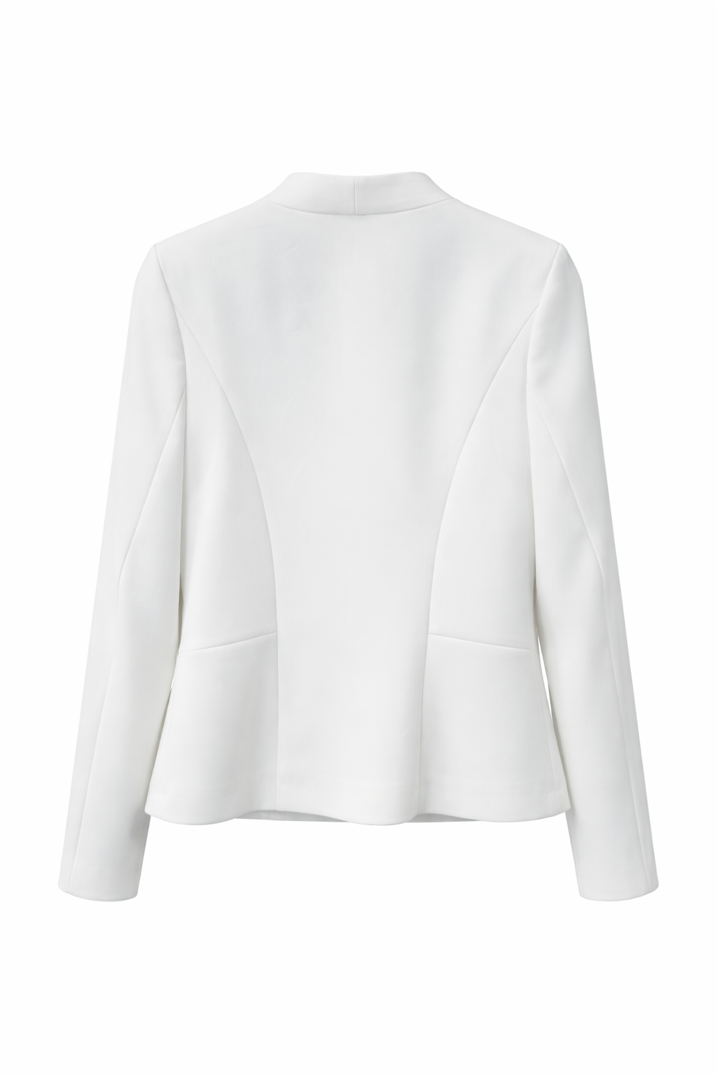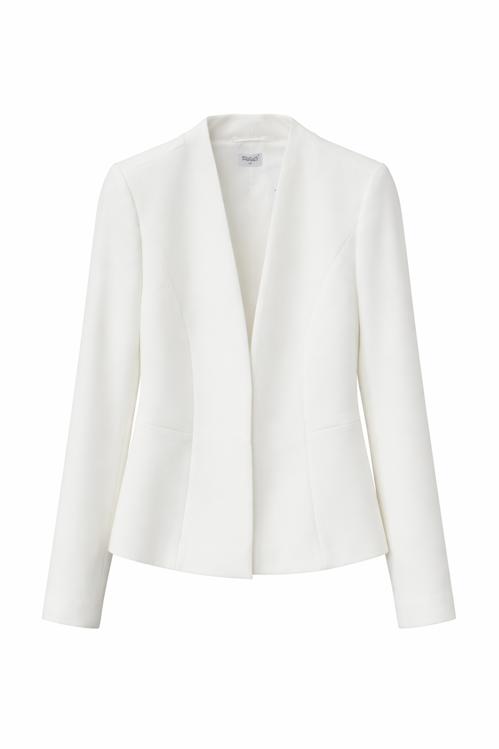 Elegancki żakiet w kolorze ecru. Taliowany fason bez klap. Długi rękaw. Zapięcie na ukrytą