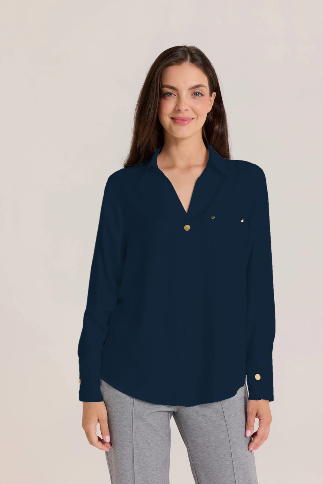 Granatowa bluzka wiskozowa salko ze złotymi dodatkami