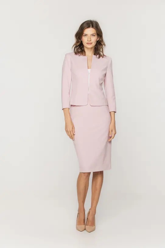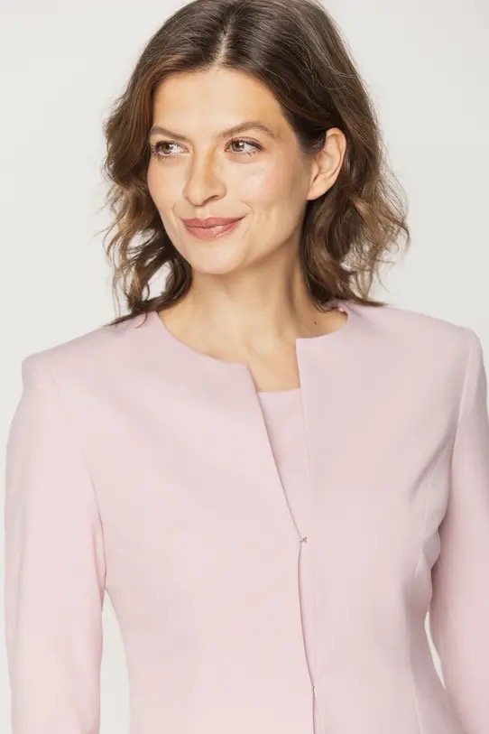 Żakiet zapinany na matki, rękaw 3/4. Model posiada podszewkę.