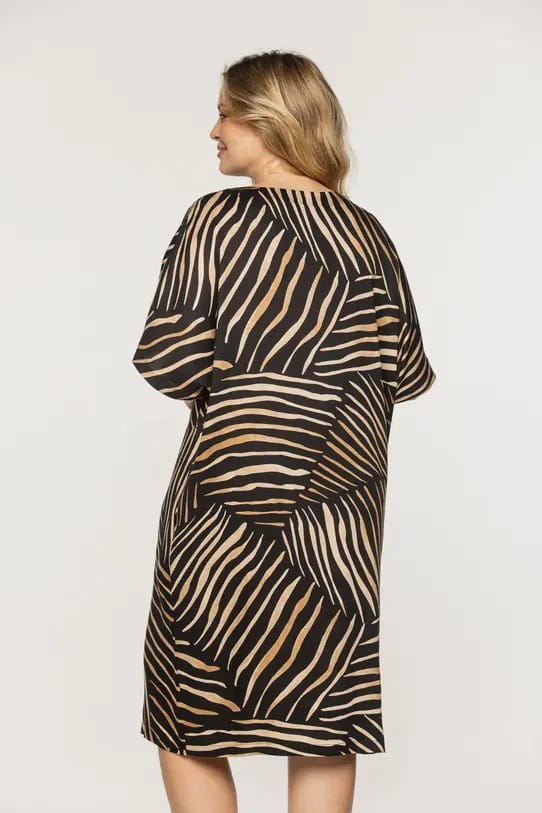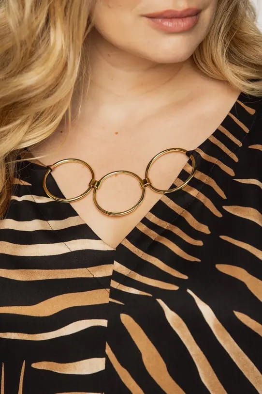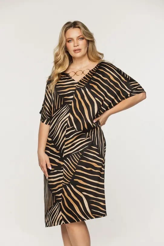 Luźna wiskozowa sukienka bialcon ze złotym zdobieniem