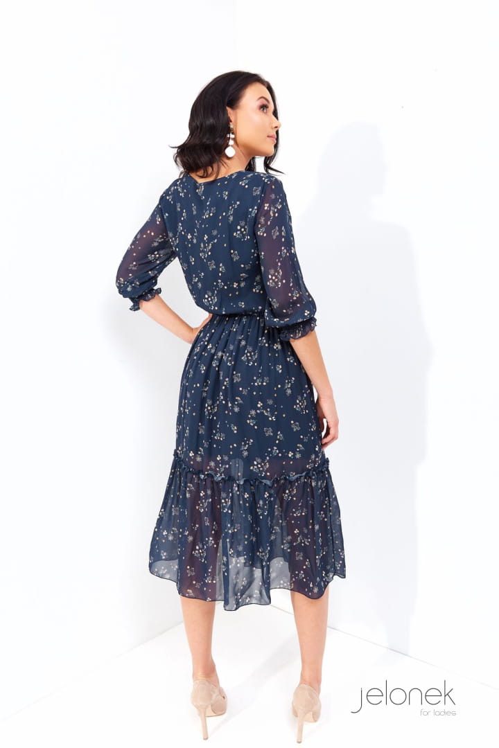 Sukienka jelonek wiskozowa granatowa w białe listki