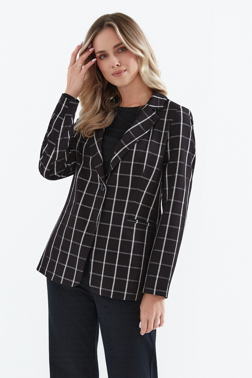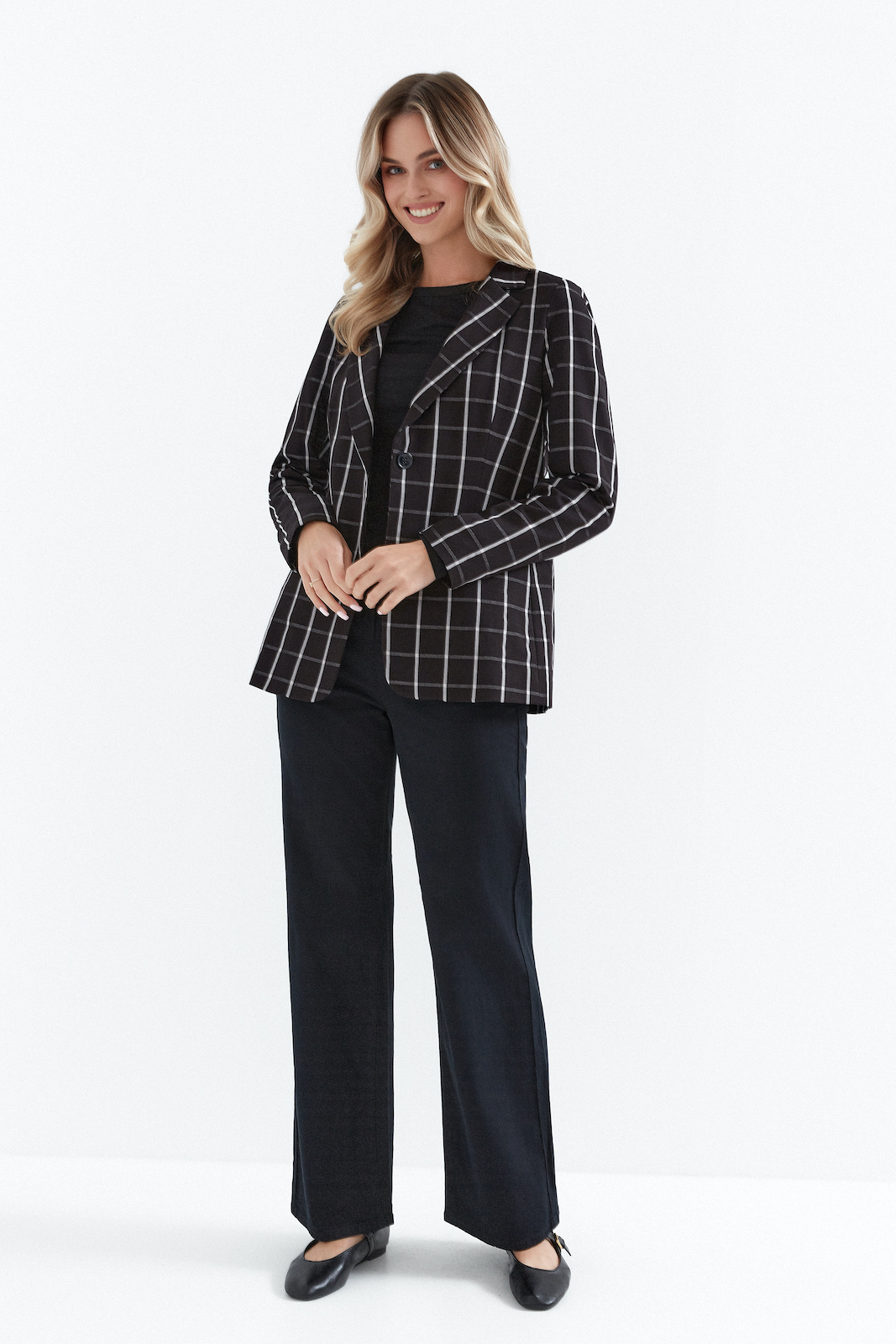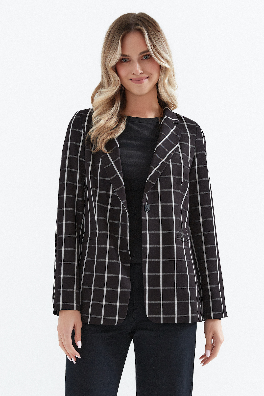 żakiet czarny w jasną kratkę marki de fitto